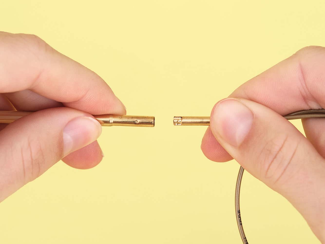 Material: Spitzen (125 mm) aus extra robustem und langsam wachsendem Bambus, Hülsen aus Messing, Goldseil aus Kunststoff, Textiletui