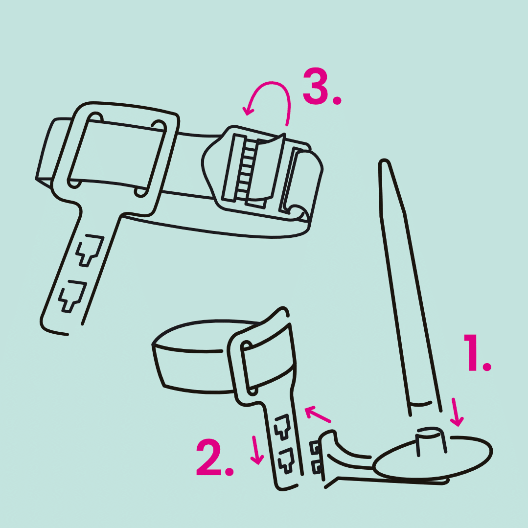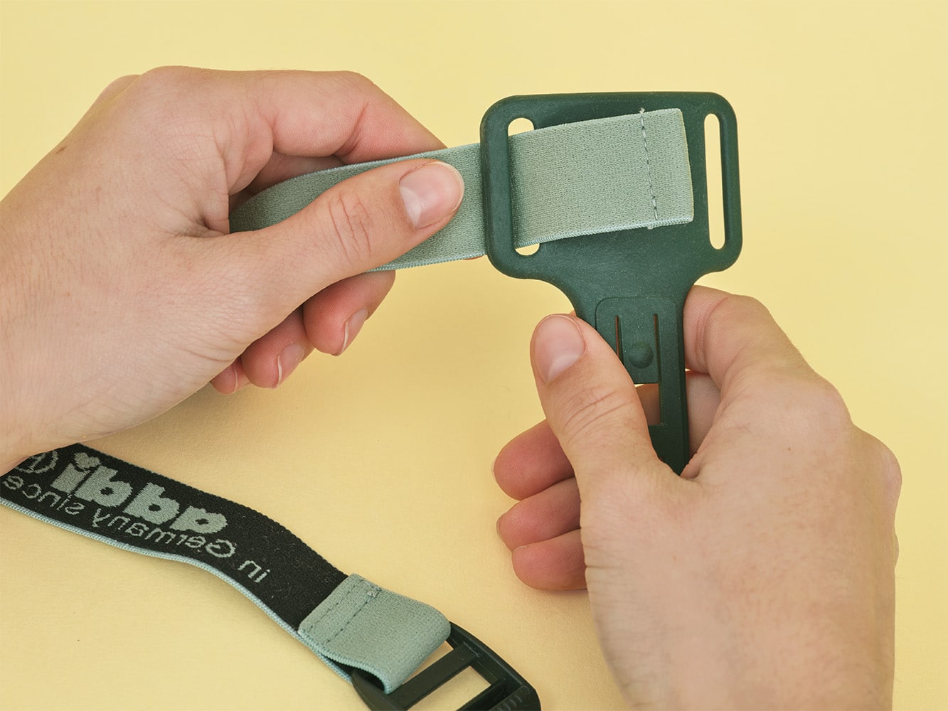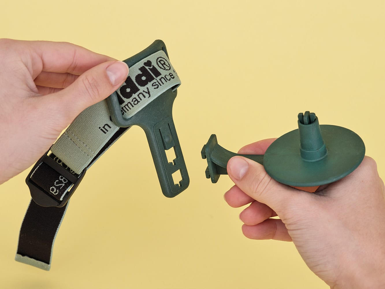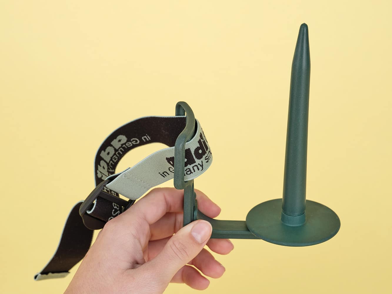 Dieses praktische Tool aus organischem Material ist ein Leichtgewicht und einfach am Arm zu befestigen. Für den Transport ist es schnell zerlegt und im beiliegenden Beutel verstaut.